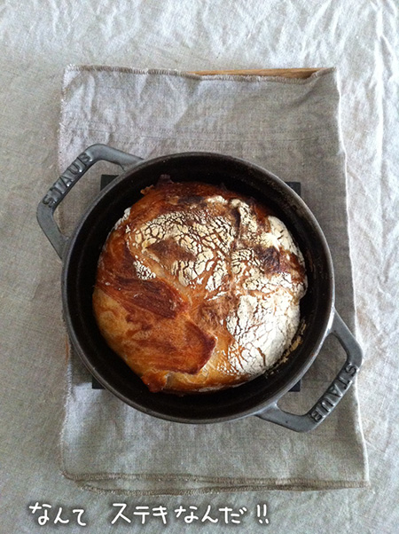 ある日ネットサーフィンして遊んでいたら「ストウブで捏ねないパン」というのを見つけました。なにやらストウブ鍋で簡単にパンが焼けるらしい。しかも絶品らしい!