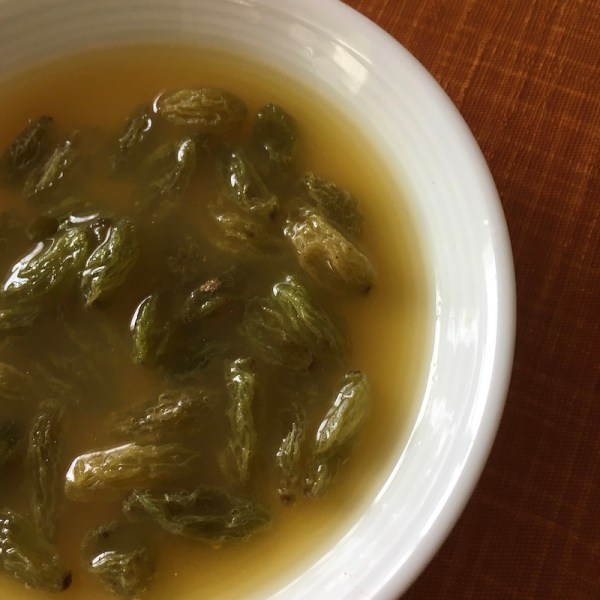 レーズンはそのまま使っても良いのだが、ちょっとした思いつきで、オレンジジュースに浸してみることにした。
