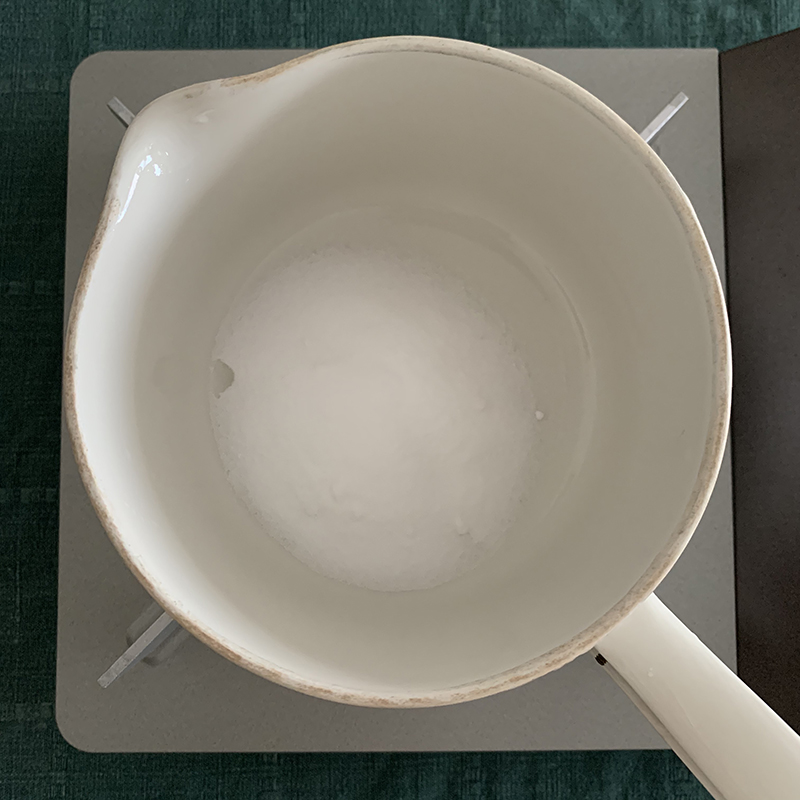 2、鍋にグラニュー糖を入れて中火にかけます。