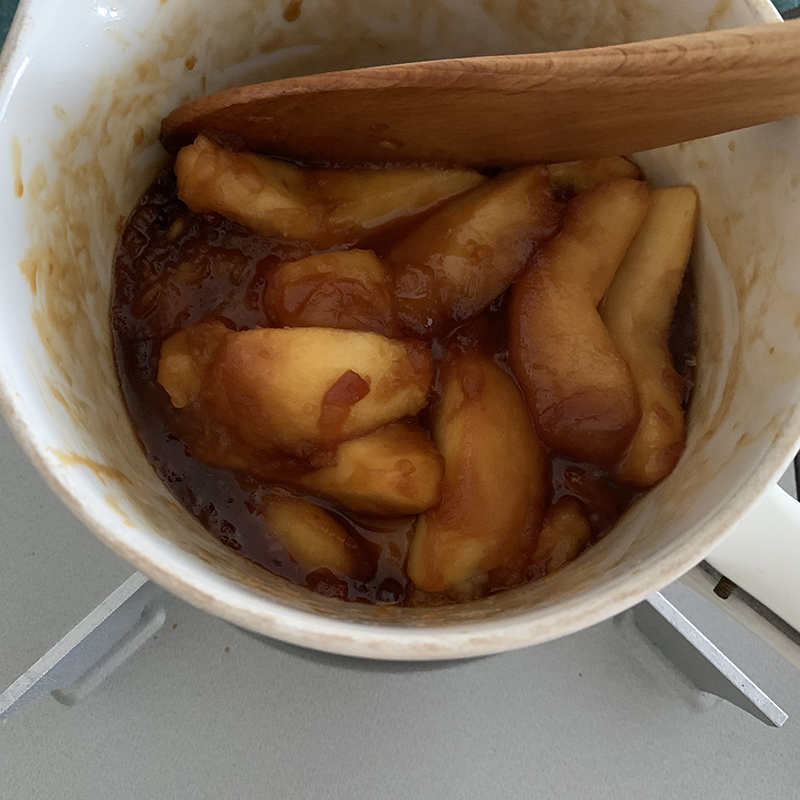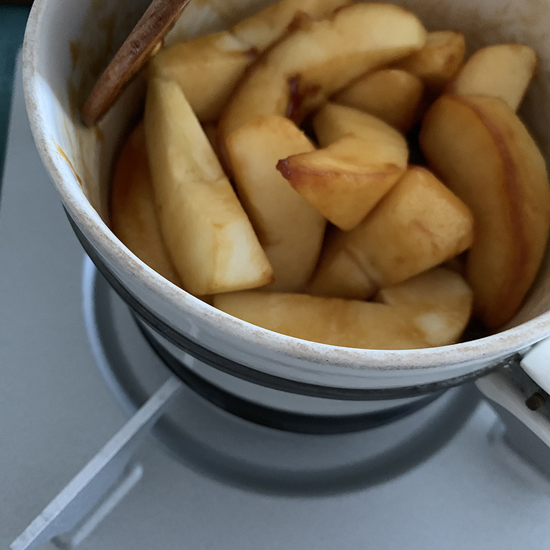 - リンゴが好みの柔らかさに煮上がったら火を止める。