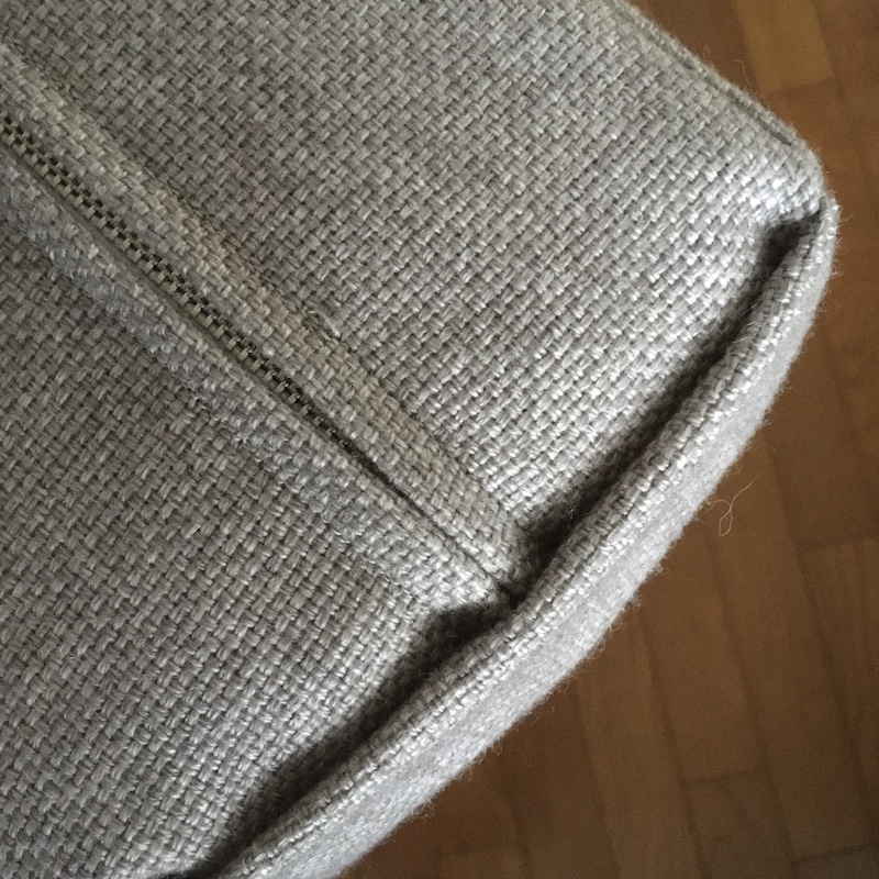 こういう仕上げは初めてなくせに、用意したジッパーの長さが短すぎてポケットを作る部分がコーナーに重なり、椅子張り職人の縫い方とはちと違うやり方になってしまったのに、さほど気にせずに縫い始めてしまったのだ。