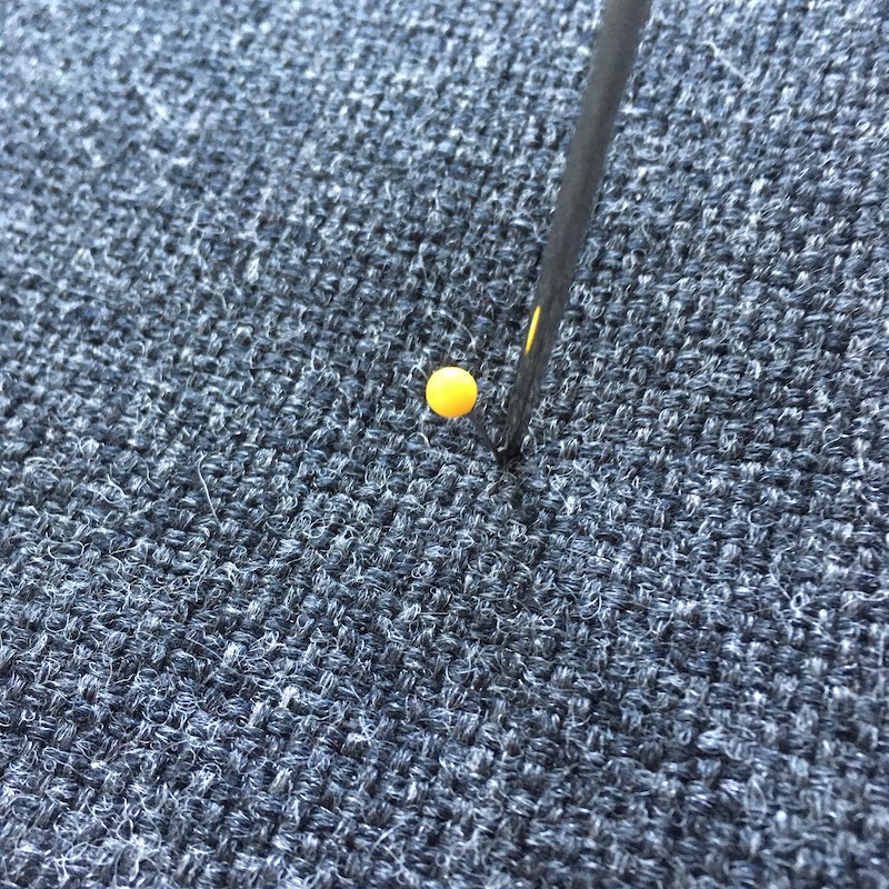 厚みのあるクッションにグサっと突き刺して反対側まで貫通させるための針なので、クッションの厚みよりも長いものが必要だ。