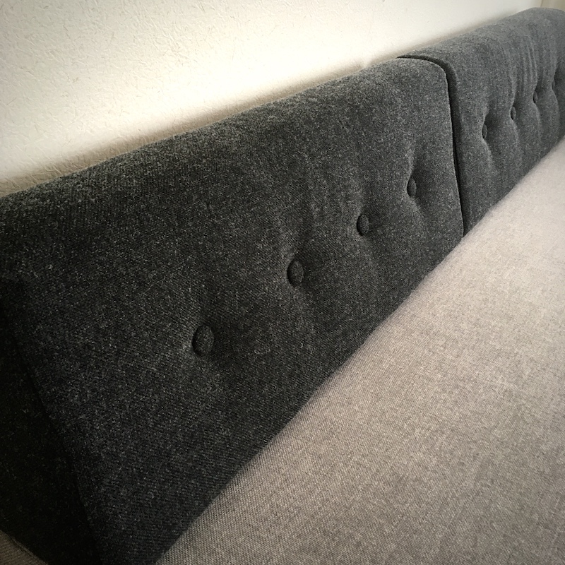相棒曰く、背もたれクッションのボタンはさほど気にならないが、マットレスにボタンがついていると座ったり寝転がったりした時に気になるらしい。