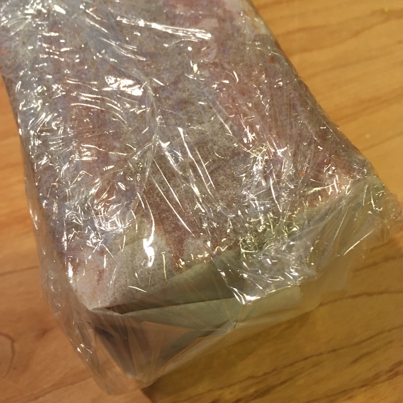 そのあと、クッキングシートで全面を包みこみ、それをさらにラップで包む。
