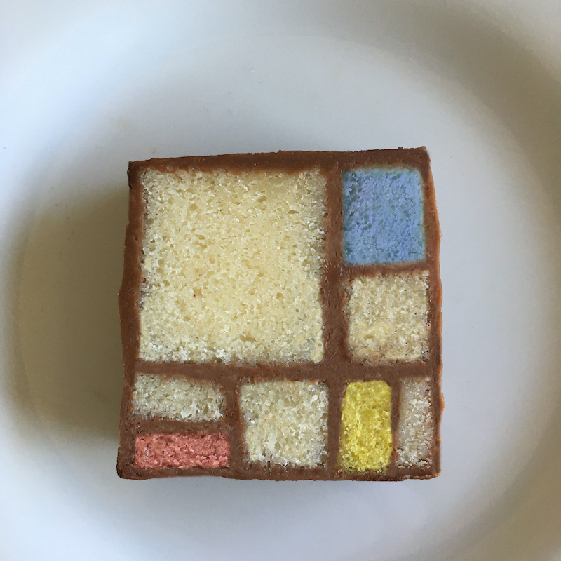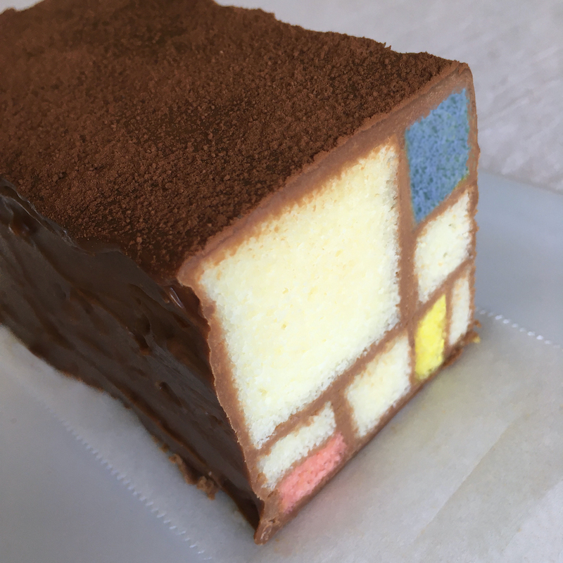 そして、ピエト・モンドリアン(Piet Mondrian)の有名な『赤・青・黄のコンポジション』がモチーフのモンドリアンケーキだ。