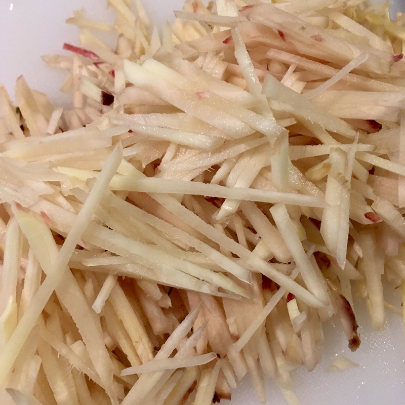 別に薄切りでも良いし、ざく切りでも、なんならすり下ろしても良いのだが、なんとなーく千切りに。