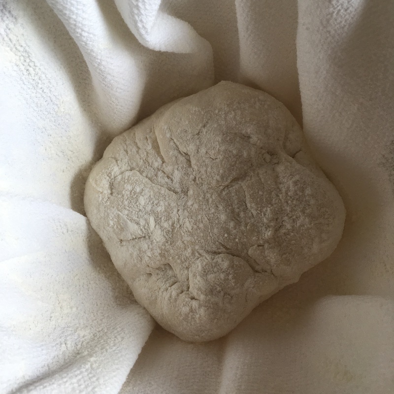 それを粉をたっぷり振った整形カゴや布巾、あるいはクッキングペーパーの上に置いて約40分間二次発酵させる。