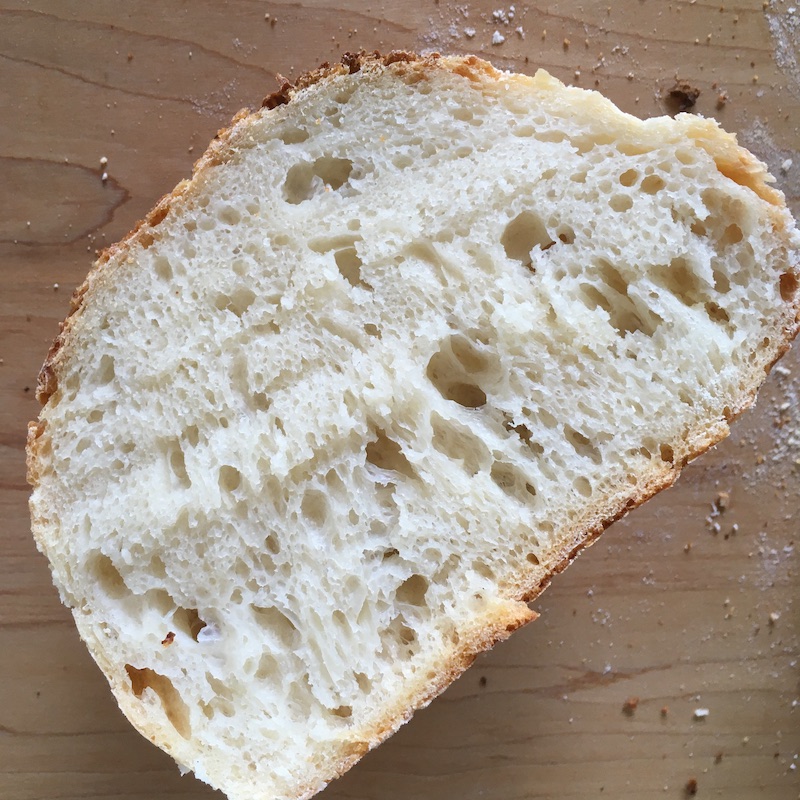 少ないイーストとたっぷりの水分でゆっくり発酵させるので発酵時間が長く、一次発酵に12〜18時間かかってしまうため、発酵時間や焼き始める時間を逆算して仕込まなくてはならない。しかも発酵時間はその日の温度や湿度によって左右されるので、夜中にむくっと起き上がってパンを焼くハメに陥らないよう数時間の余裕をもってパン焼き計画を立てないといけないのだ。