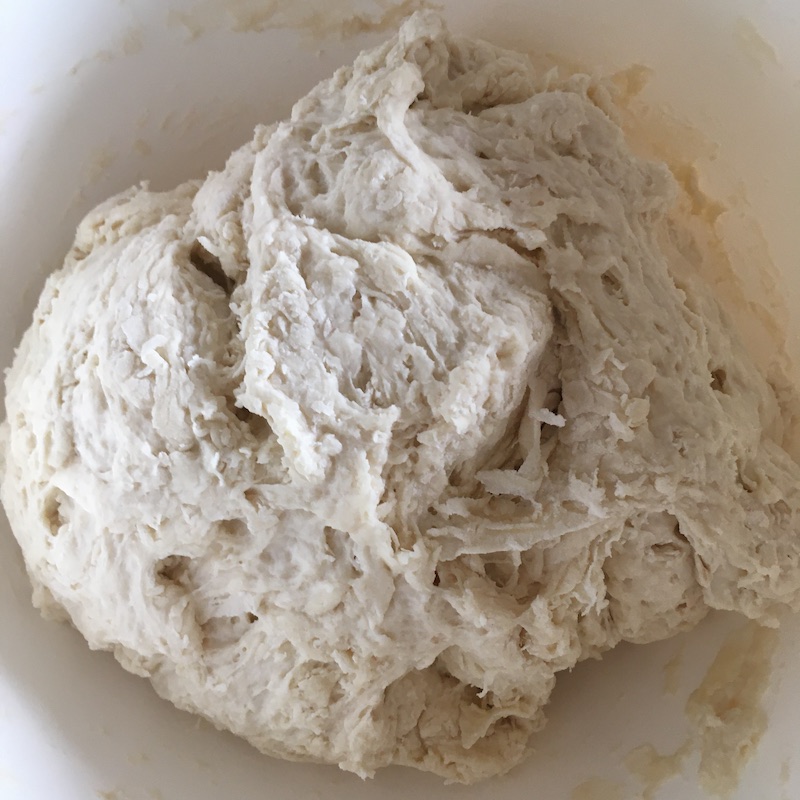 少しベタつく生地のはずで、これを一つのボールにまとめる。