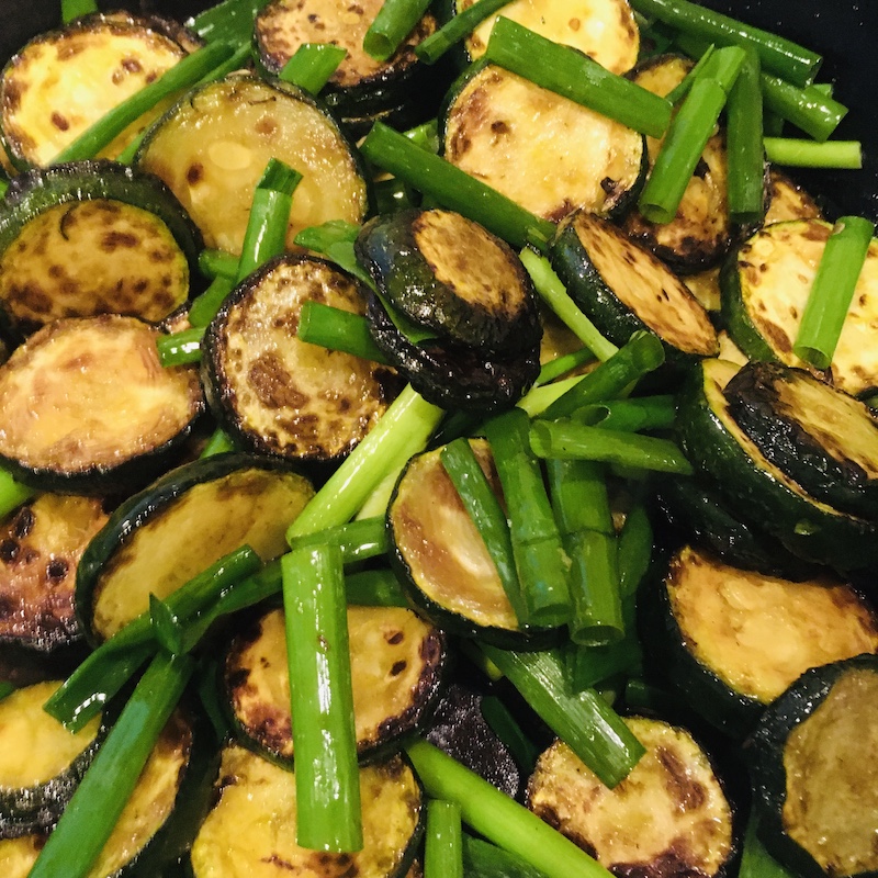 ズッキーニと青ネギとミントのワインヴィネガー炒め