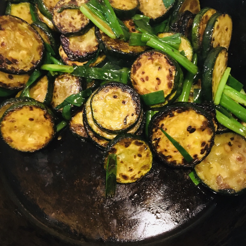 - 熱く熱したフライパンにオリーブオイルをたっぷり目に入れ、ズッキーニの両面がカラメライズするまで強めの中火で焼く。フライパンに一度に入りきらない場合は数回に分けて焼くと良い。 3.ズッキーニが全て焼けたら分けて焼いた分も全てフライパンに戻し、青ネギと塩ひとつまみを入れて青ネギがしんなりするまで炒める。