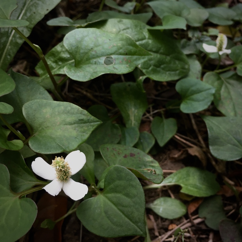 しゃがんで葉にふれるとフワッとドクダミの匂いが漂う。