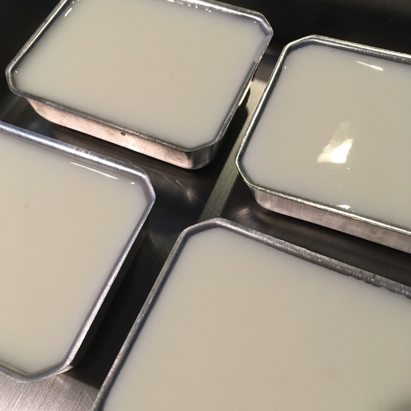 この分量で110cc入る鳥のゼリー型4つ分出来上がった。