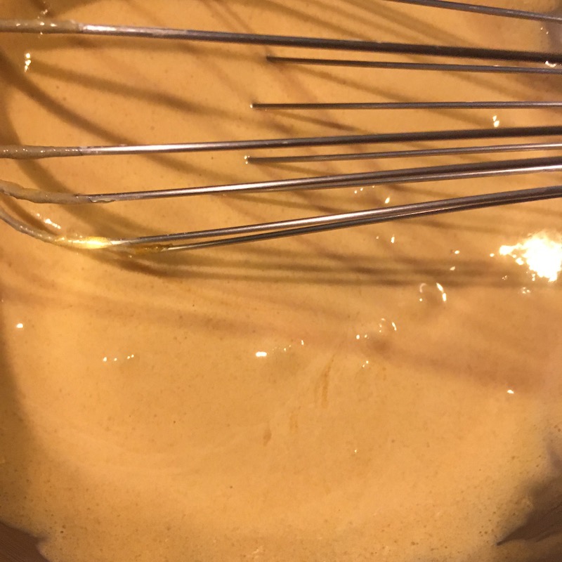 - 2のボールを600wの電子レンジに2分30秒かけ、一旦取り出して泡立て器でよくかき混ぜる。電子レンジに戻してさらに1分30秒加熱し、取り出してもう一度泡立て器でよく混ぜる。ここでもしまだ固まらずにユルい状態の場合はさらに30秒加熱してよく混ぜる。