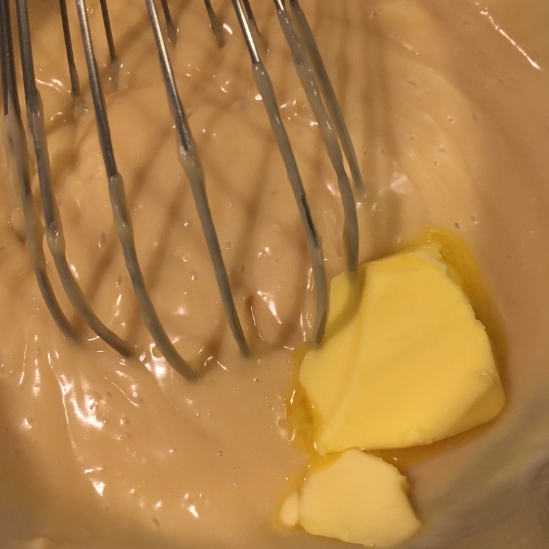 お好みで、出来上がった熱々のカスタードクリームにバターやブランデーを入れても美味しいです。