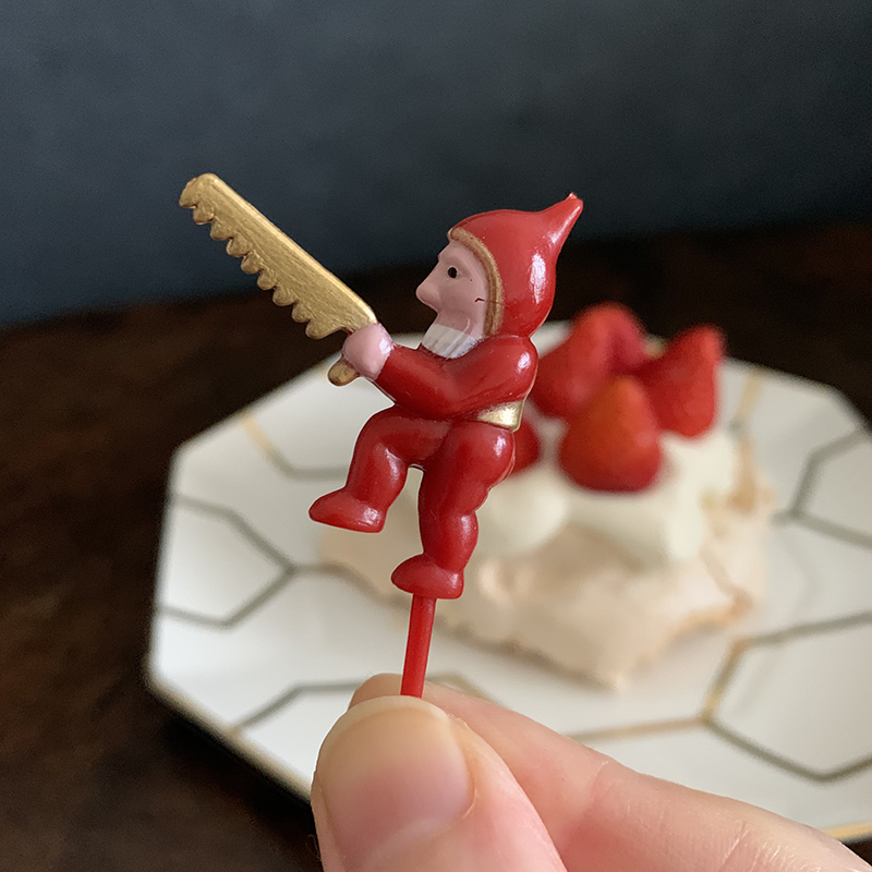- お好みでサンタクロースの仮装をした木こりのケーキピックを飾って出来上がり。