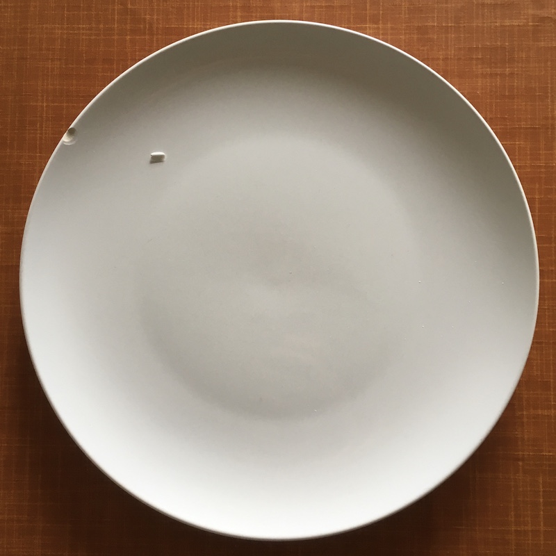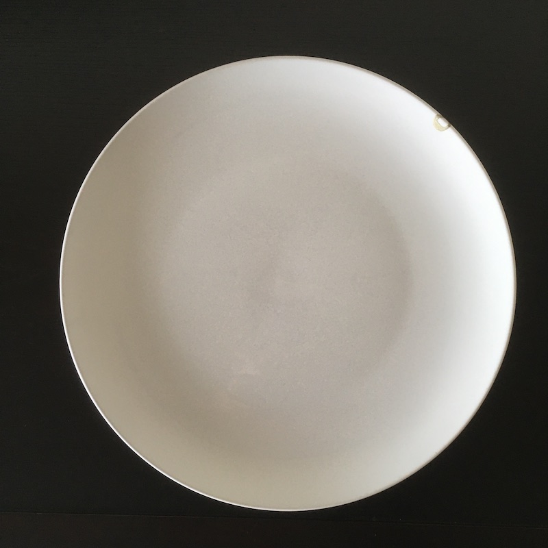 ある朝、のそのそと寝床から這い出して台所に行くと、カウンターの上にIKEAの白い大皿が乗っていた。