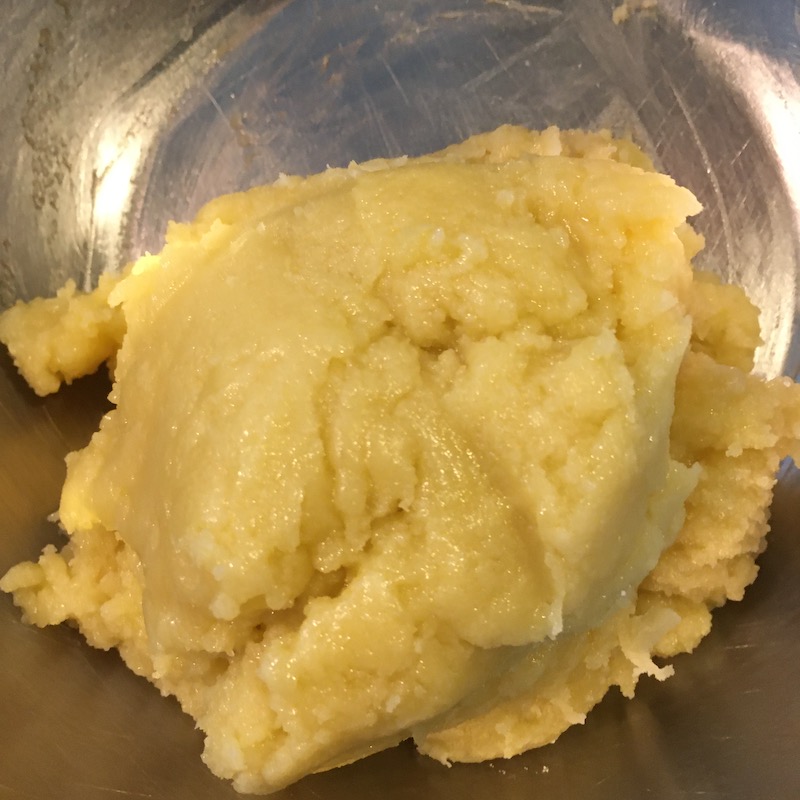 これを粉を入れておいたボウルに入れ、捏ねないように優しく混ぜる。