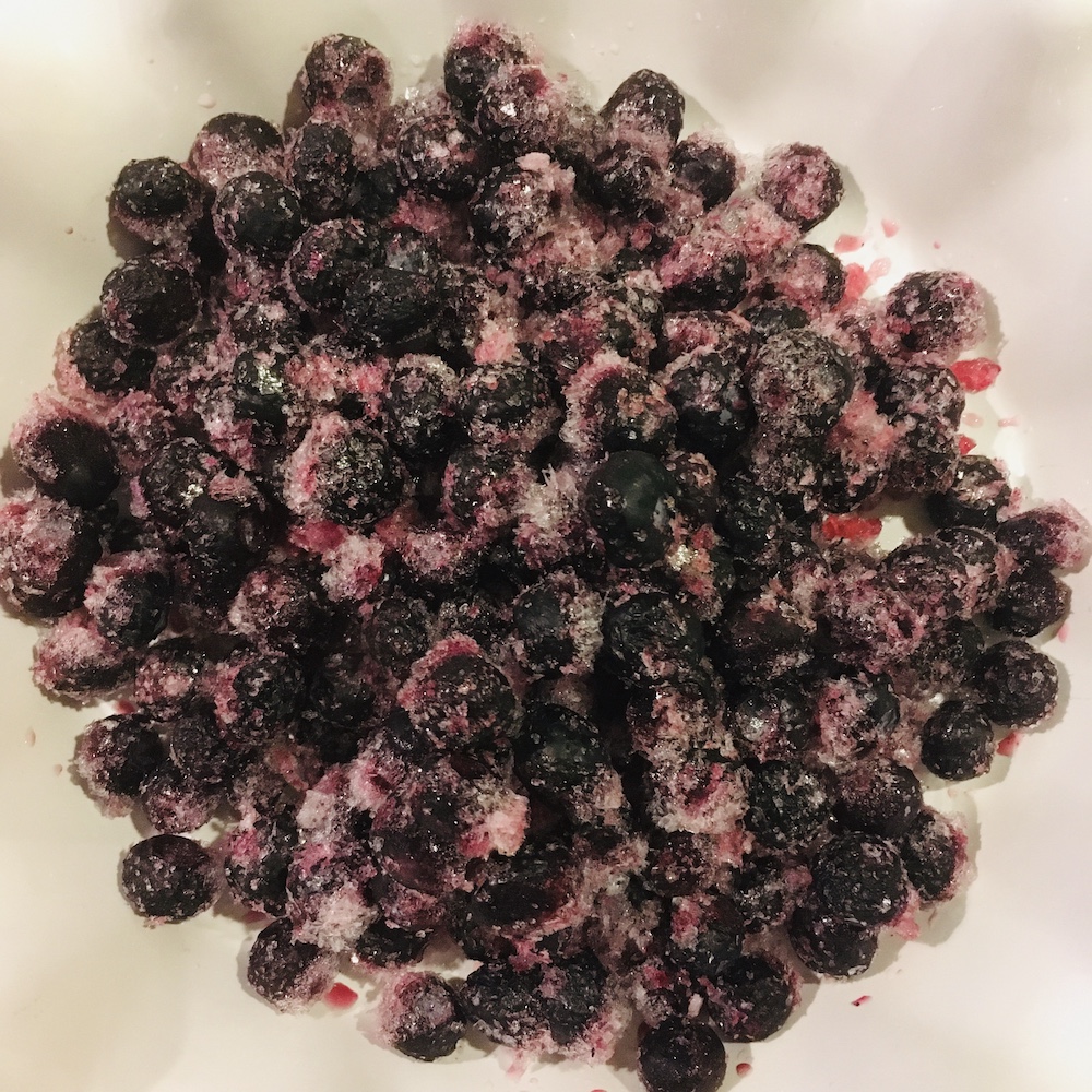 「じゃあ」ってんで、代わりに簡単にできるブルーベリー・クランブルを作ることにした。