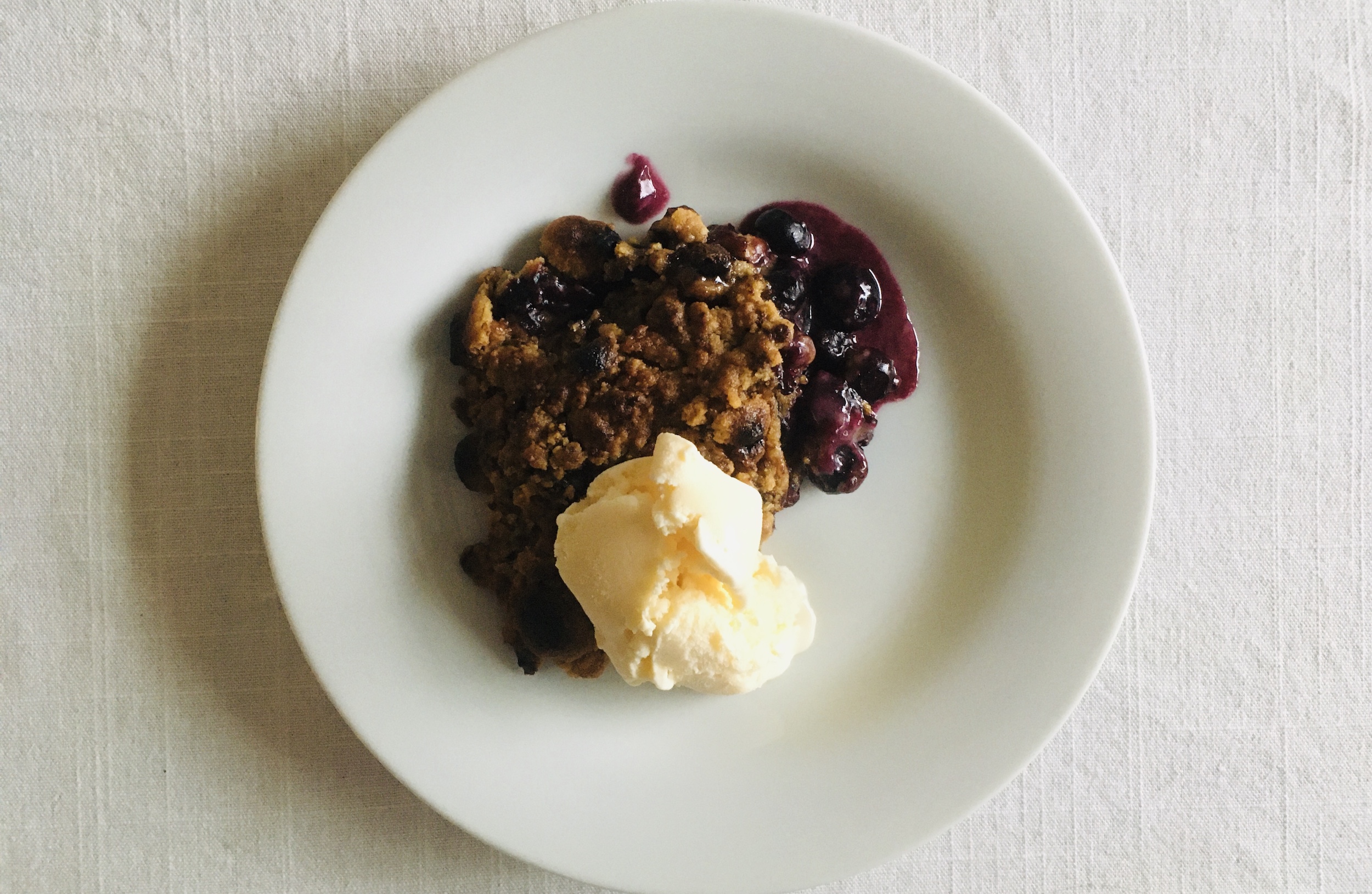 ブルーベリー・クランブルのバニラアイスクリーム添え
