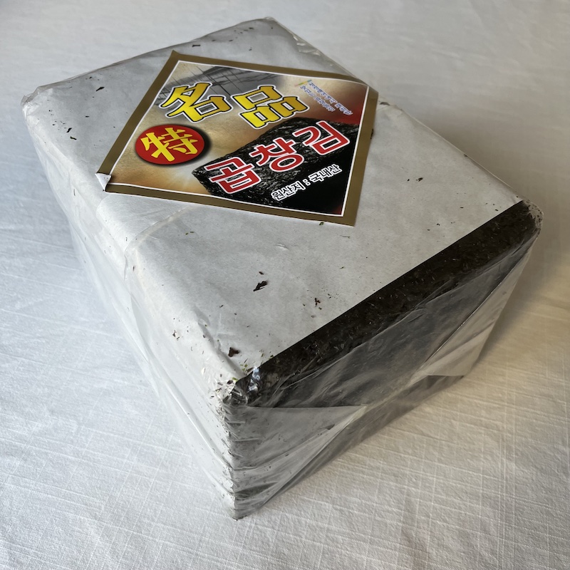韓国海苔といっても塩と胡麻油で味付けした小分けパックのあれではなく、味付けされていない昔ながらの海苔の大容量パックだ。
