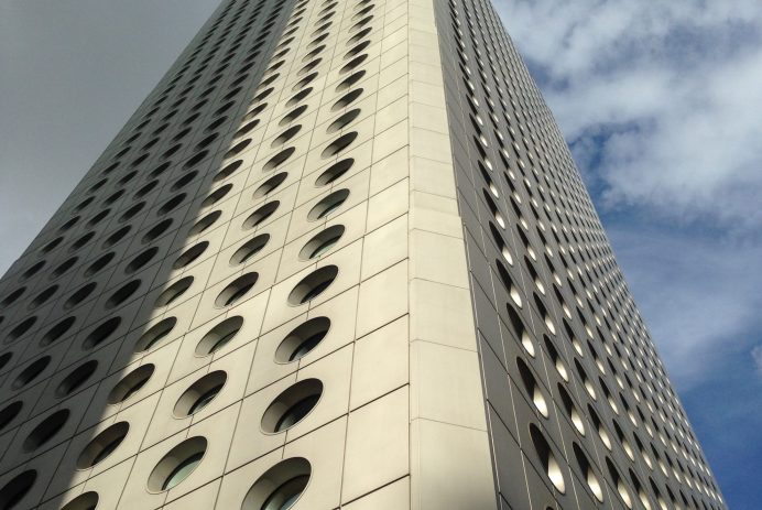 鴨川のほとりにある中華の老舗、東華菜館の看板には屋根がある