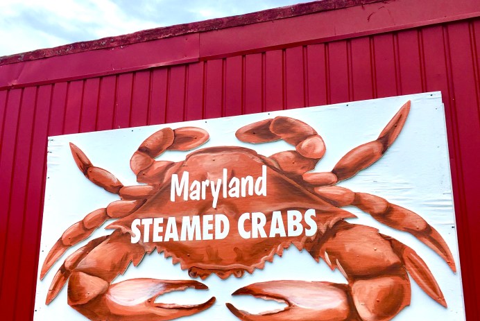 トンカチとバケツとオレンジ色の手で食べるメリーランド州名物